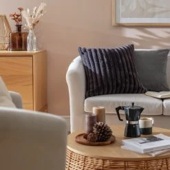 Habitat Ribbed Faux Fur Cushion – Charcoal – 50X50cm