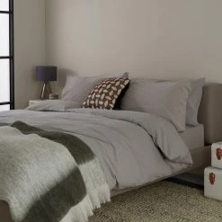 Habitat Washed Plain Stone Grey Fitted Sheet – Double