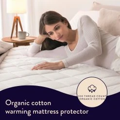 Crafted from 200 thread count sustainable, organic cotton, our premium warming mattress protectors have cloud-like softness so you can drift off cocooned in warmth. The natural fibres keep you toasty in the winter but cool in the summer. Double size with 1 control. Easy to fit with a deep 38cm elasticated skirt. 5 minute fast heat up, 6 temperature settings and auto shut off timer. Machine washable and tumble dryer safe; simply detach the digital control. Energy saving, costing from only 1p to run.