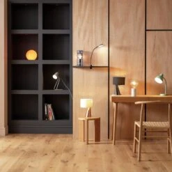 Touch and glow. With its stunning geometric silhouette and contemporary matte black finish, our Abono lamp brings a luxe lightness to the room. A great statement piece for a desk or side table. Switch on and see how the barrel shade directs the light into a shining, golden pool below. Cosy and cool.