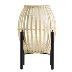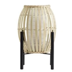 Get neutral with our Aoki bamboo table lamp. This lantern-like living room essential creates a warm, ambient glow that's just perfect for snuggly evenings in. Crafted with natural materials and an elegant black base, it'll bring a touch of Skandi style to your space. Cosy, contemporary and right on trend.