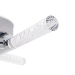 Glam it up. This elegant glass and chrome light sits flush with the ceiling. Radiating chic sophistication during the day, flick the switch at night and bask in the glow of a real statement piece. Soft light bounces off the bubbles in the trio of wands. Gives a friendly, cosy, intimate vibe to modern decor.