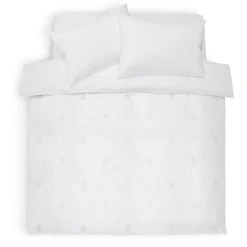 Silver embroidered leaves on white cotton, we've elegant country charm all sewn up. This bright white duvet set features a subtle textured botanical repeat pattern. Made from quality cotton percale, the fabric is soft and designed to last. Fresh looks and cool comfort. A combo worth getting into bed with.