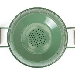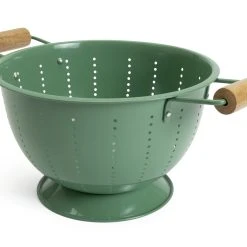 Retro classic. Accessorise your kitchen with this fashionable and functional green colander. Lightweight and easy to use it makes draining, straining and rinsing a doddle. With a robust enamel coating, mango wood easy grip handles and a practical raised base, it offers bags of style. A standout strainer for your counter. Definitely an everyday essential.