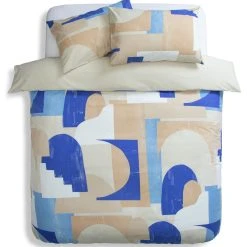 Two looks in one. For those of us who like to change it up now and then, this reversible duvet set is just the ticket. Abstract printed rings in blue and white bring a crisp modern look to your space. The soft, light easy care fabric is wonderfully inviting too. Pop on a bright contrast cushion or match with classic crisp white for an instant bedroom refresh. You just decide which side.