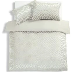 Turn your bedroom into a silver sanctuary. With its on-trend metallic colour and jacquard design our luxe velvet single duvet set brings you all out glamour. Soft and sensuous the strokable fabric adds a glamorous layer to your decor. Feels good, doesn't it? While the plain underside is designed in a complementary cool shade. Very glam.