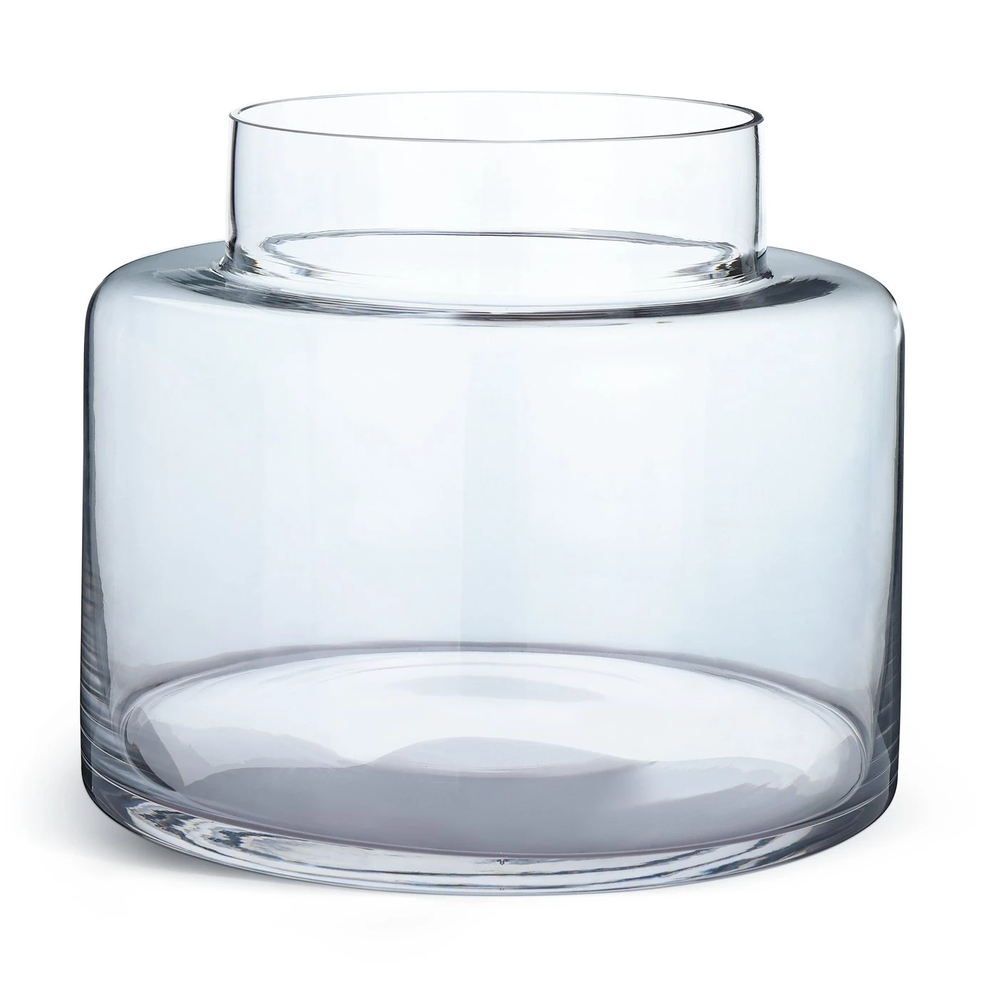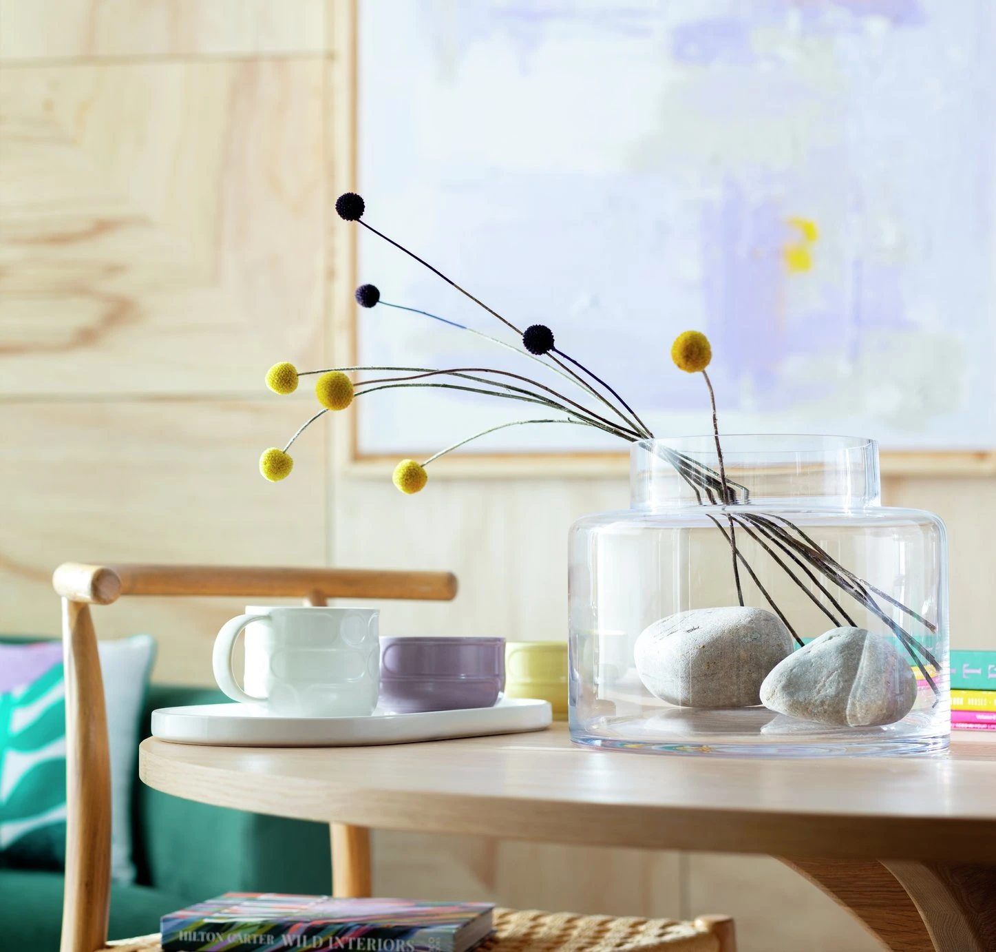 This clear glass vase is pared-down elegance. With its wide base and simple lines just add a big bunch of fresh blooms and it'll turn it into a stunning floral centre piece.