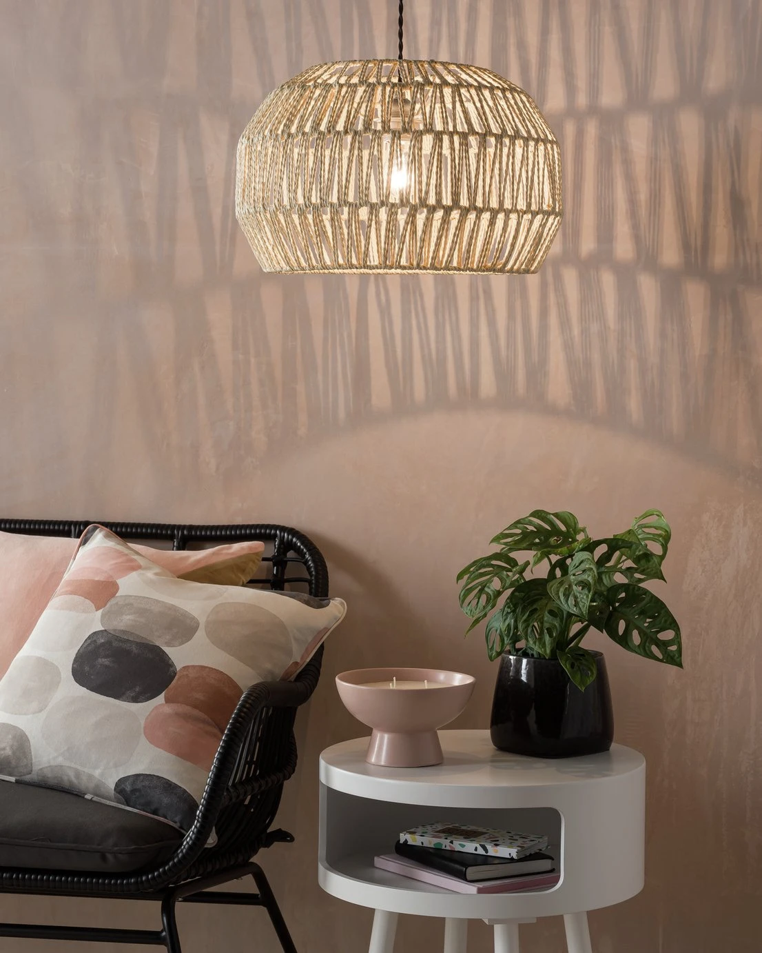 Discover lighting inspired by global travels for a warm and inviting home with our Global lighting collection. Taking a fresh look at pattern and texture, this woven natural rope lampshade sets a contemporary mood with its textured weave design and exposed bulb detail. Casting patterns around your space, it creates a sense of drama when turned on. When off, it adds a striking and stylish finishing touch to your home.