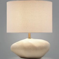 Our white organic pebble table lamp is a natural beauty. With a smooth, contoured form, its sculpted base sits comfortably bedside or in the lounge. Perched on a central chrome stem, its simple, rounded shade emits a warm glow. Flick the switch for an instant cozy ambience. Clean, bright, and inspired by nature.