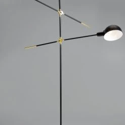 A touch of class in black and brass. Our twin-arm floor lamp introduces a modern twist to a classic design. The adjustable arms and heads let you position it to throw light in all directions. A great way to brighten up a dark corner of the lounge or bedroom. Crafted from steel, this sleek, streamlined piece is ready to stand the test of time. Just tap the foot switch and get glowing. Now that's a bright idea.