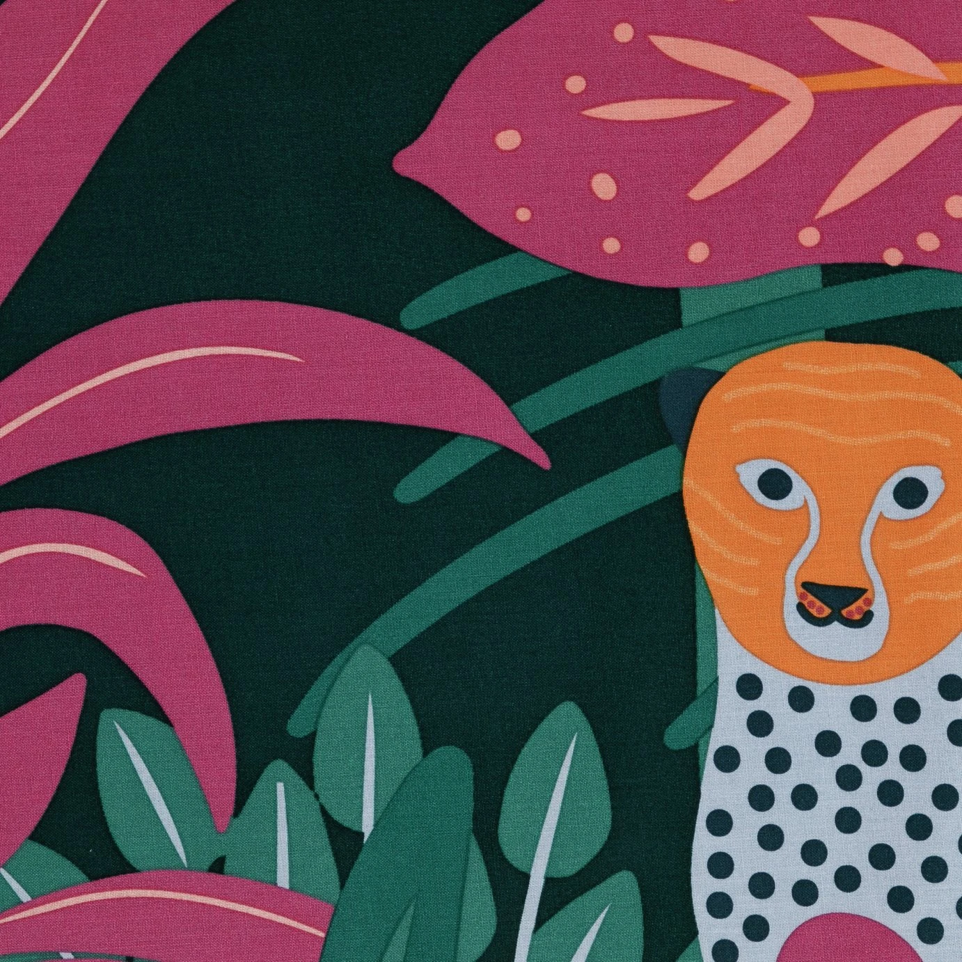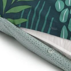 Ferociously fabulous. That's our exotic jungle print bedding set. With lots of vibrant colours, lush leaves and animal friends, it brings a dash of adventurous charm to a child's room. And there's more. The flip side reveals a calm speckle print. Made in 100% cotton, it's soft, long lasting and easy to care for. Go wild and nab one.
