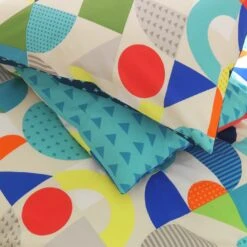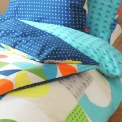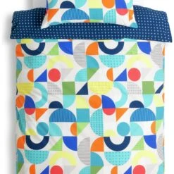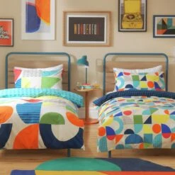 Meet our multi-coloured, twin pack, double sided, geo printed, burst of brightness duvet sets. Phew. Never a dull moment even on a rainy day with this bedding around. And just in case it all gets too wild, then simply flip to find a contrasting calm, single colour behind. What a totally fabulous solution.