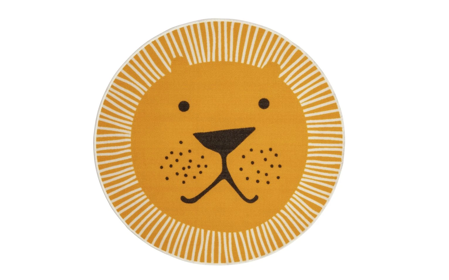 Roaringly radiant. Youngsters will love our bold, big cat circle rug. Bright and cheerful in sunshine yellow. A friendly face for their bedroom floor, or a spot of colour for the playroom. This adorable lion print rug has an anti-slip backing, so it's super safe and stays right where you put it. Kids can run wild around their new furry friend. Get ready to pounce.