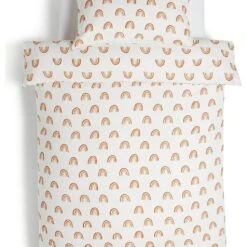 Our funky, modern toddler bed set will brighten up rainy days, sunny days and every day. With a simple, orange rainbow design on a crisp, white background, it's a breath of fresh air to a child's bedroom or your guest bedroom.