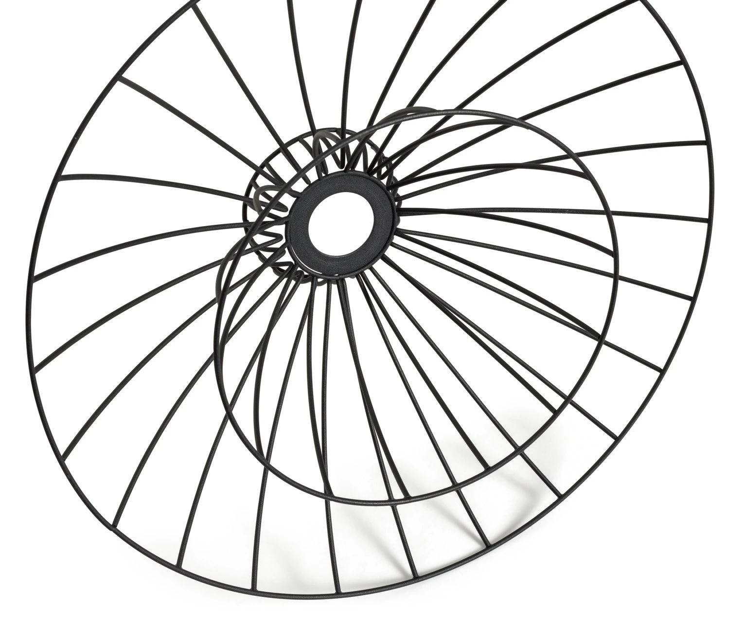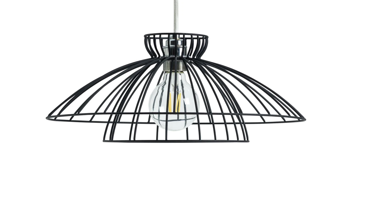 Very Zen. This Japanese inspired wire light shade is elegant, modern, and totally on trend. The matt, black sand finish enhances the minimalist feel and the two-tier construction adds layers of eye-catching detail. Switch on and watch it cast dramatic shadows on walls and ceiling. It's super easy to install, just pop on an existing light fitting.