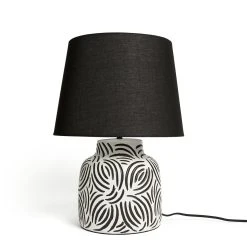 A mesmerising monochrome masterpiece. This black and white lamp has that iconic pop art feel. Embossed black brushstrokes form a daisy like pattern on the curved ceramic base. And to top it off, a simple black linen shade adds some dark drama. Full of contemporary character, this table lamp will grab all the attention wherever you put it. A stroke of design genius.