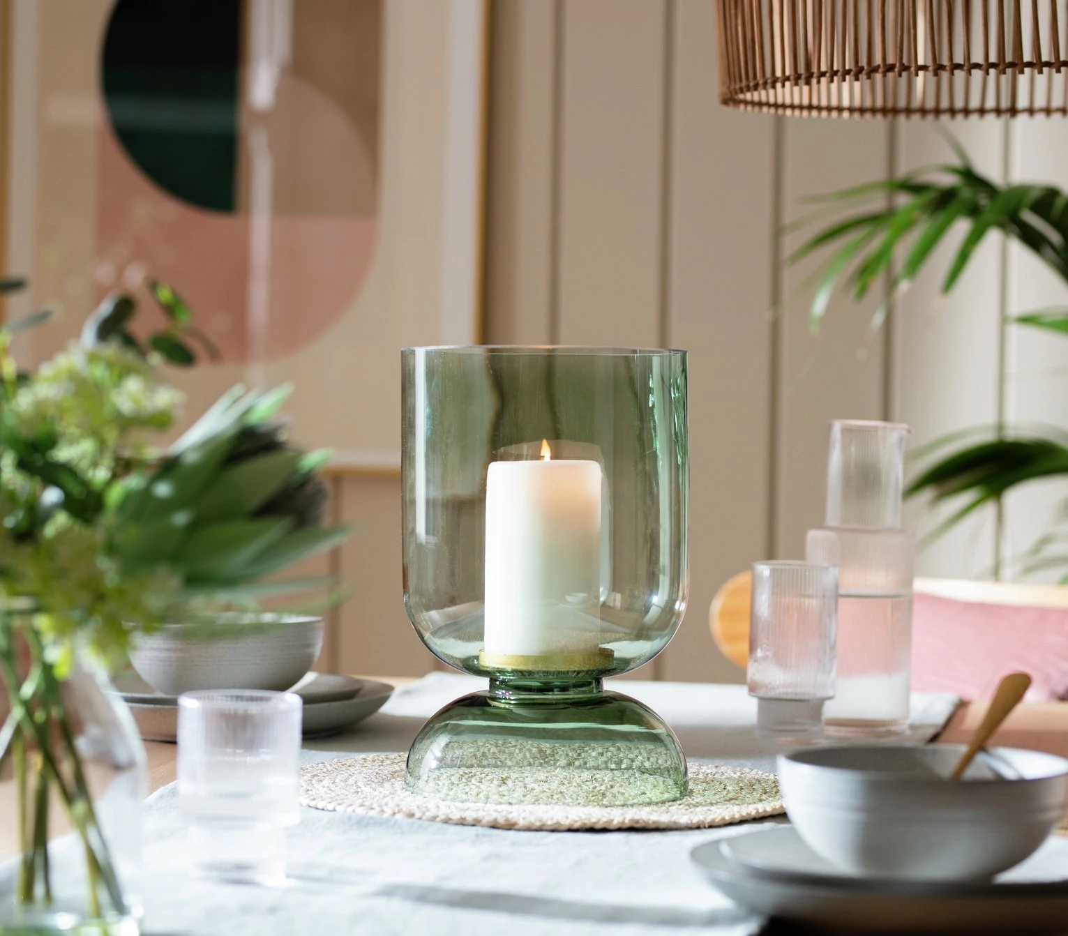 Looking for a pared-back lamp? This hurricane lantern is everything you need. Made from glass it has an elegant, curved design. Pop a pillar candle into the holder and you're ready to light up any occasion.