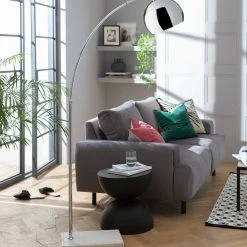 Cool and curvaceous in chrome. Our stunning Arc floor lamp lifts the decor of your living room to show home glamour. The reflective silver shade hangs elegantly on an arched stem held in place by a sturdy marble base. Position it to throw light over the sofa or armchair, or have it illuminated a dark corner of the room. Makes a striking feature whatever you choose. Just tap the foot switch and settle down with a good book. Tres chic!