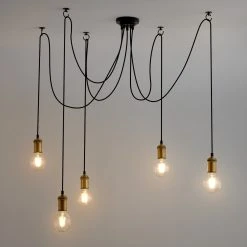 Make a statement this season. Our Nyos spider chandelier is bang on trend with its industrial metallic detailing and exposed filament bulbs. Inject urban appeal into your living room or kitchen in a flash with this dramatic vintage style ceiling light. With an adjustable drop, you choose where these luxurious lights sit best. Lower over a dinner table for a more intimate atmosphere or higher up for busier areas. So versatile, so elegant, so very cool.