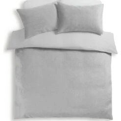 Quality bedding with a quilted touch. With its little velvety puffs of pinsonic plumpness this double duvet set is irresistibly tactile. And don't you just love its boutique hotel look? A glamorous style that makes you want to kick off your shoes and jump into bed. And in light grey, it's totally decor friendly. Plus, the underside is smooth polycotton, so cool and comfortable next to the skin. Who's for an early night?