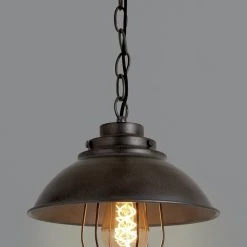 Industrial and edgy. Our caged black pendant rocks the semi-exposed bulb look. Protected by a metal grid, light streams from beneath the pewter shade. Casts dramatic shadows onto the surface below. Suspended on a metal chain it's great for accenting a breakfast bar or kitchen table. Or create a focal point in your hallway. Moody and cool.