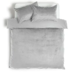 Plush on top, comfortably cool below. On the outside this silver grey duvet set is saying, look at me, feel my rich velvet texture. But underneath it's all snuggly smooth. Bold bedding that's doubly smart.