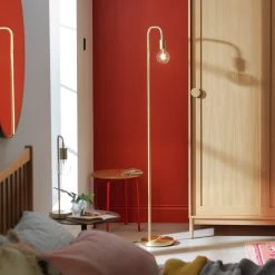 Shine a light on style. This minimal brass floor lamp is a stand out stunner in any room. Light up a dark corner of your bedroom. Put it in your lounge next to your favourite armchair. Give your work room a spot of glamour. The tall slim brass frame is elegantly unfussy. The bulb is not meant to be in the shade. It's a design piece all of its own. To turn it on or off, simply step on the discrete floor switch.
