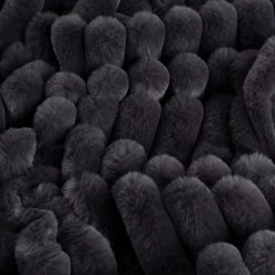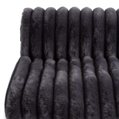 Come over to the dark side. Our deep charcoal throw is softly seductive. With lush faux fur and a ribbed feel, it's luxurious to touch. And comfy too. Wrap it around your shoulders or over your lap to feel snuggly warm on chilly nights. Or drape over the end of your bed to add a dramatic luxe touch.