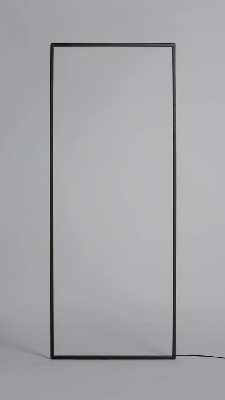 Step right in. This cool retro frame is a marvellous metallic feature. Lit behind by warm, white LED lights, it looks cool day or night. Lean it against a dark bedroom wall, press the footswitch and ta-dah, the stage is set for a dramatic statement. Standing nearly 5ft tall the jet black brushed metal frame sits beautifully in an industrial or minimalist decor. Pop it in the garden at parties to create a fun focal point too. What are you waiting for?
