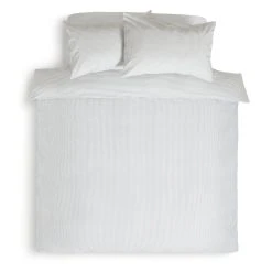 Stripes never go out of style. Soft and light to the touch, this airy polycotton single duvet set brings a simple sophistication to any bedroom. Coordinating well with bright and breezy interiors, you can enjoy grey vertical stripes on one side and horizontal on the other. Twice as nice.