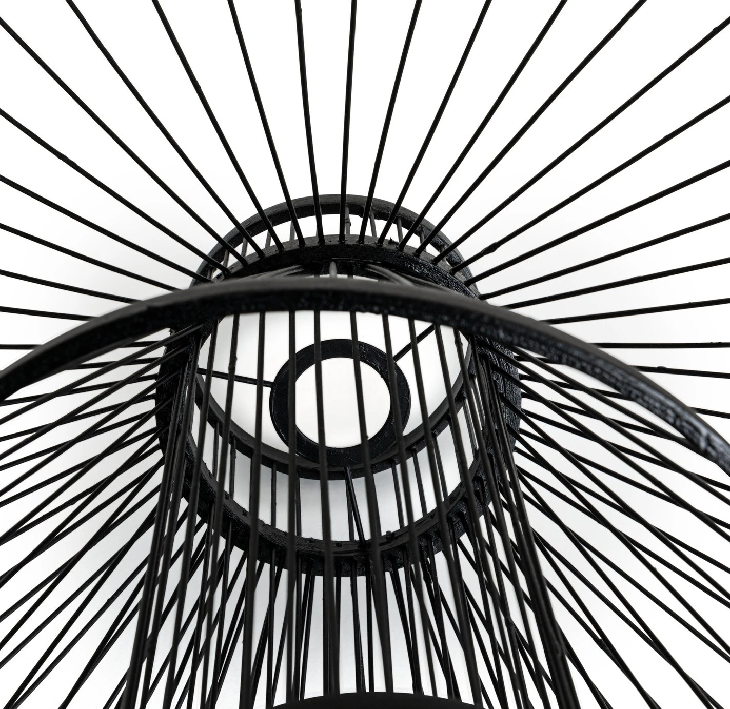 Three tiers for this stunning shade. With its contemporary cage design this black bamboo pendant shade demands centre stage. And there's never a dull moment. When the light shines through the 3 woven canopies you can enjoy your own shadow show. Very theatrical. A bold look for a lounge, bedroom, or dining room. Dramatically dark, naturally exotic.