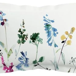 Rotary panel printed stem / floral design to front, hand painted spot design to reverse. Panel printed Oxford pillowcase with floral design starting from the bottom working up.