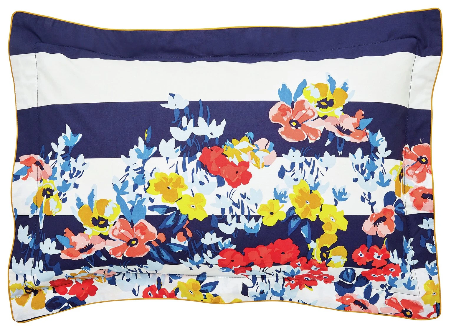 Alive with colours inspired by the St Ives coast, this duvet set will brighten up the bedroom and give you another reason to smile in the mornings. Its colourful floral print stands out against a nautical horizontal stripe in a way that distinctively says 'that's Joules'. You'll find a thinner stripe reverse and premium finishing touches to the set such contrasting gold cord piping around the edges.