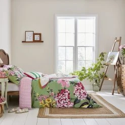 A fresh palette of grassy greens, pretty pinks and perfect purples catches the eye (and raises a smile) in this hydragnea floral bedding set. The large-scale, hand-drawn print will welcome nature into your home. And for a touch of contrast the reverse is a soft pink and white candy stripe. This set comes with two matching Oxford pillowcases (single beds come with one) and can be complemented by additional standard pillowcases sold separately.