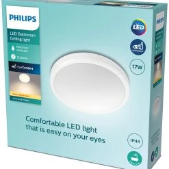 Philips LED luminaires provide light that is designed for the comfort of your eyes. Philips Functional Ceiling light is usable in bathrooms, due to its moisture resistance and easy to clean materials. Easy installation- No more hassle with installation. Just fix or hang securely on the wall or ceiling, and plug it in. Moisture resistance means you can confidently use this product in bathrooms, kitchens, balconies, and other spaces where moisture may be a consideration.