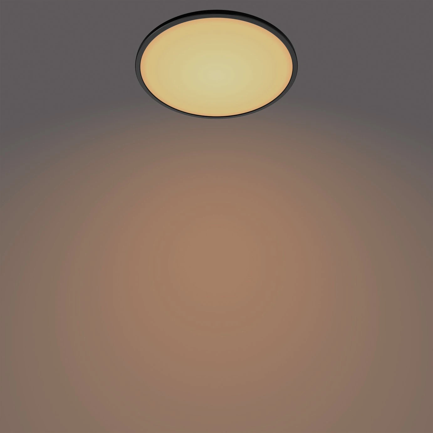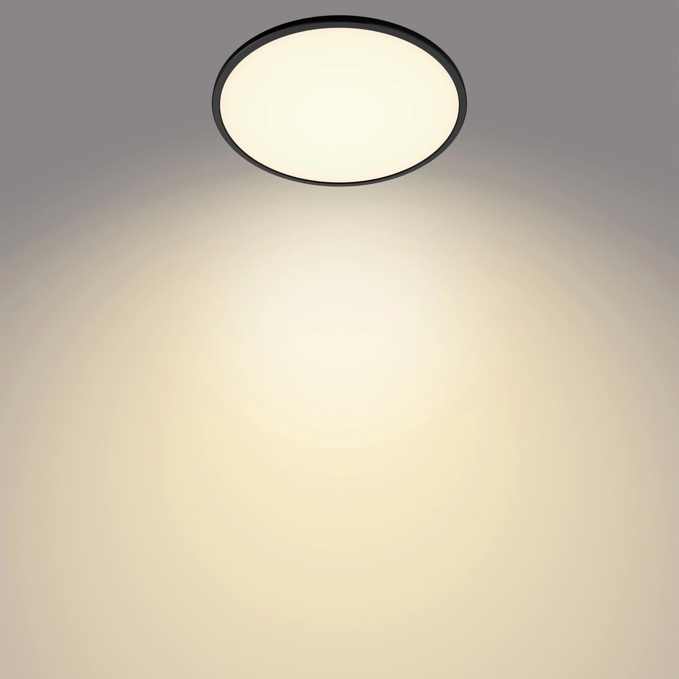 Superslim is a ceiling light from Philips, which emits a pleasant warm white light. The ultra-thin lamp uses Philips Sceneswitch technology. You can easily choose from three different lighting settings via your current wall switch, you do not need a dimmer. The ceiling light has an integrated memory clip that reminds you of the last selected lighting setting when the lighting is turned off for more than 6 seconds.