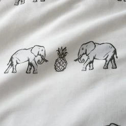 Adorned with the brand emblem, these hand-drawn elephants and pineapples are set on a savanna of natural tones creating tranquillity. Alternative styling options with an all-over pineapple reverse.