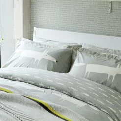 Mr Fox returns to centre stage in his latest incarnation! Silver and sleek with ivory piping, large-scale Mr Fox prowls across the 100% cotton percale duvet cover and on the reverse his small-scale cubs keep guard. The duvet cover is available in all sizes, so now children and adults alike can indulge in their adoration for Mr Fox!