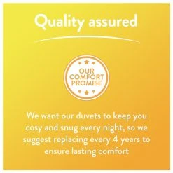 At Slumberdown, we believe everybody deserves a better night sleep. The Slumberdown Summer 4.5 Tog Duvet duvet is lightweight making it ideal for Summer nights or for those that like to be cool in bed all year round. The product has our unique smart stitch premium finish which gives a square corner making it easier to make your bed. What's more, the product is Easy Care which means its machine washable and can be tumble dried.