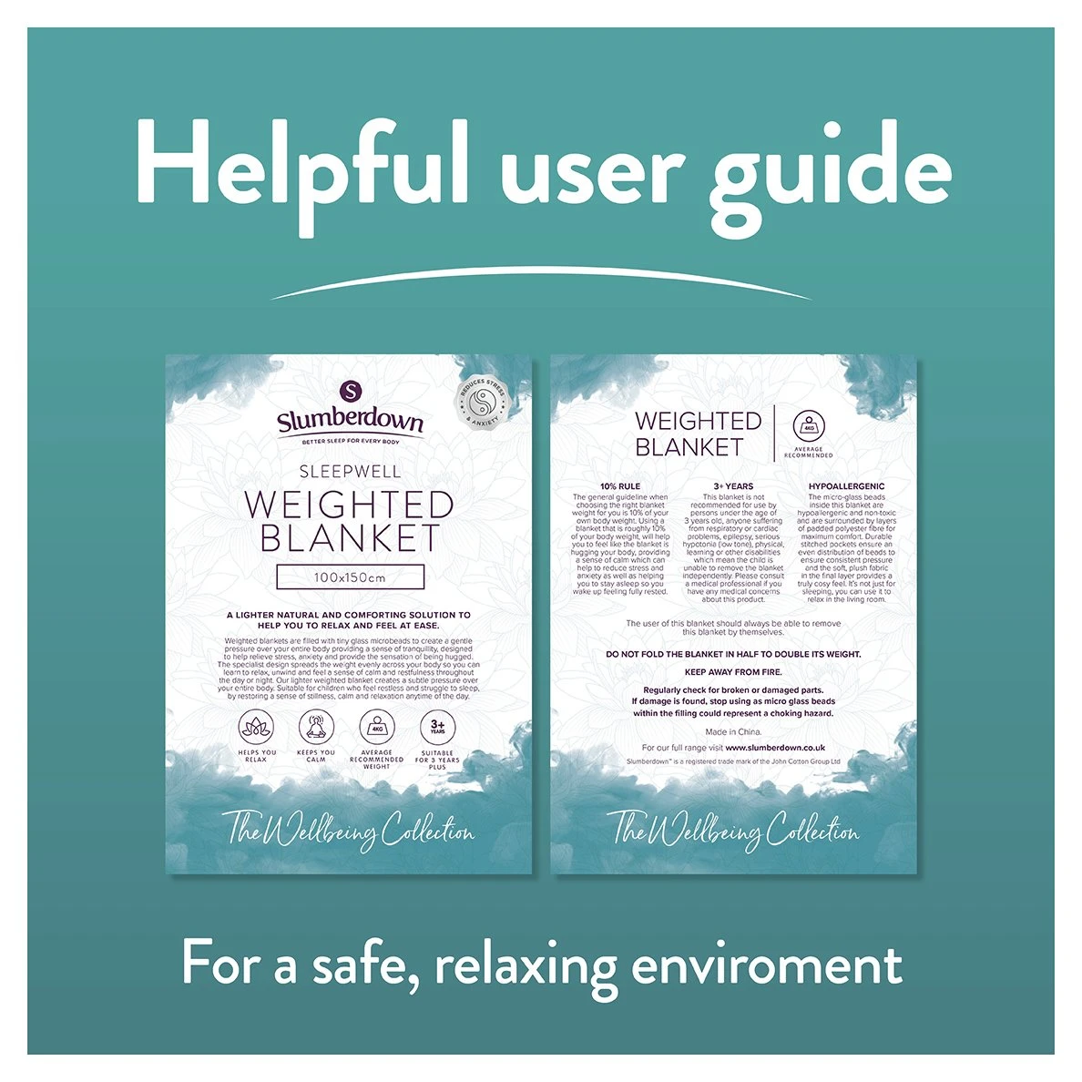 At Slumberdown, we believe everybody deserves a better night's sleep. The Slumberdown 4kg Weighted Blanket is part of our Wellbeing range and is ideal for anytime of the day or night. Weighted blankets are known to help improve sleep quality and can be used to relive stress and anxiety. The lovely soft grey blanket is filled with glass microbeads creating a gentle pressure over your entire body giving the sensation of being hugged, this allows you to relax, unwind and feel a sense of calm and restfulness.