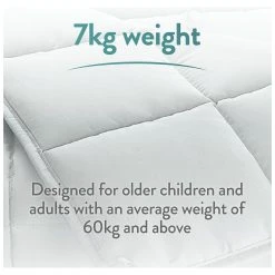 At Slumberdown, we believe everybody deserves a better night's sleep. The Slumberdown 7kg Weighted Blanket is part of our Wellbeing range and is ideal for anytime of the day or night. Weighted blankets are known to help improve sleep quality and can be used to relive stress and anxiety. The lovely soft blanket is filled with glass microbeads creating a gentle pressure over your entire body giving the sensation of being hugged, this allows you to relax, unwind and feel a sense of calm and restfulness. Made in the UK.